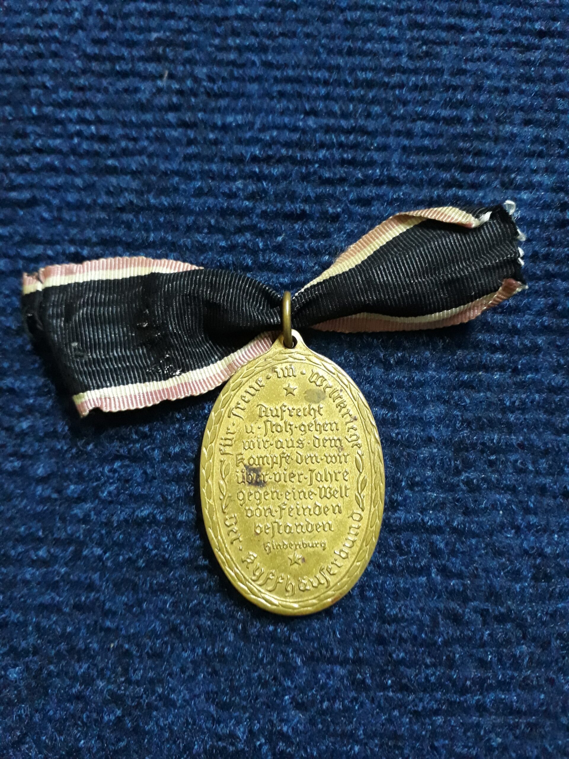 Medalha alemã comemorativa da Primeira Guerra Mundial (1914–1918), vinculada à associação de veteranos Kyffhäuser, produzida no período pós-guerra, década de 1920.