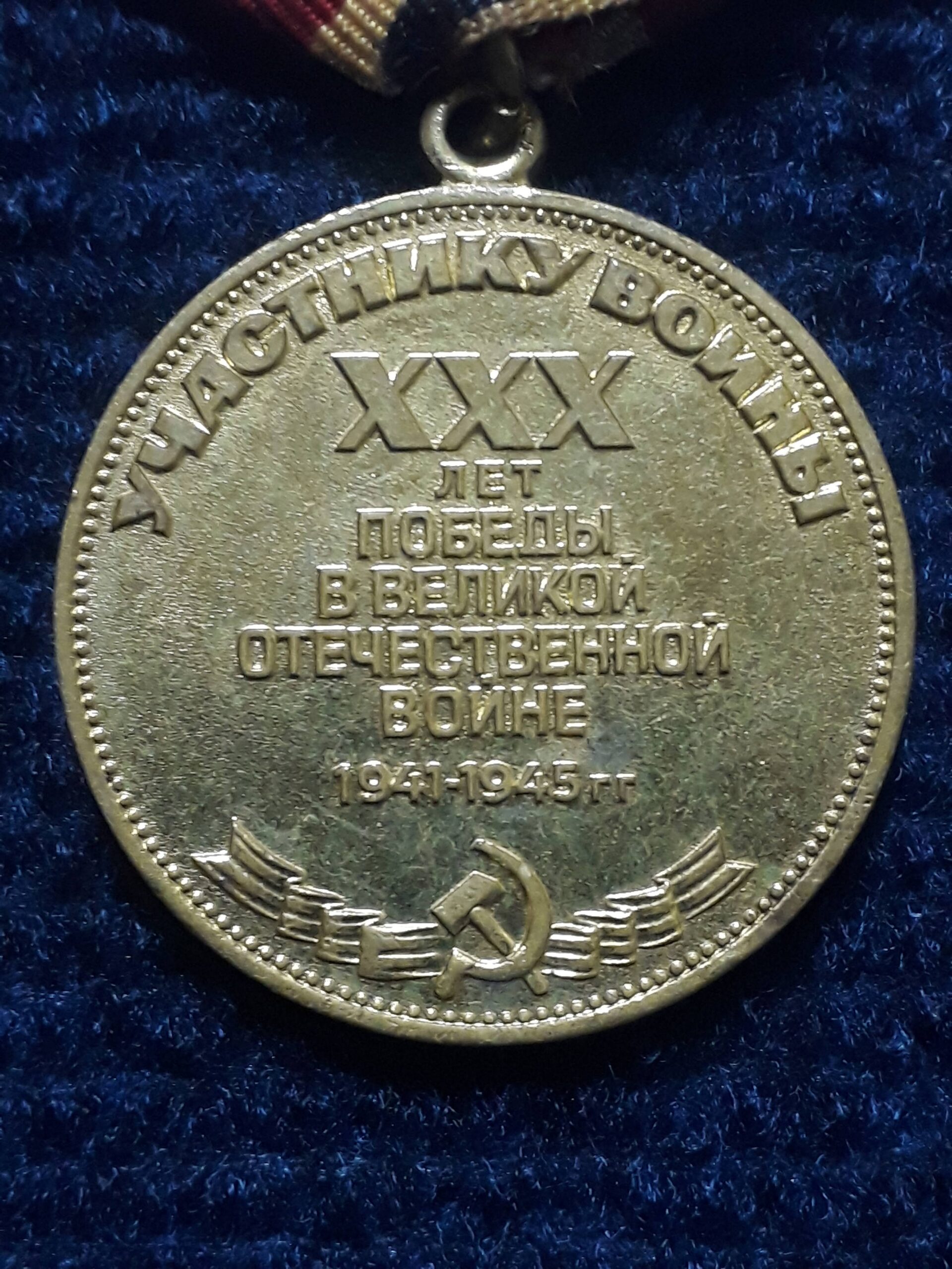 Medalha original soviética instituída em 1975 para comemorar os 30 anos da vitória da União Soviética na Segunda Guerra Mundial (Grande Guerra Patriótica).