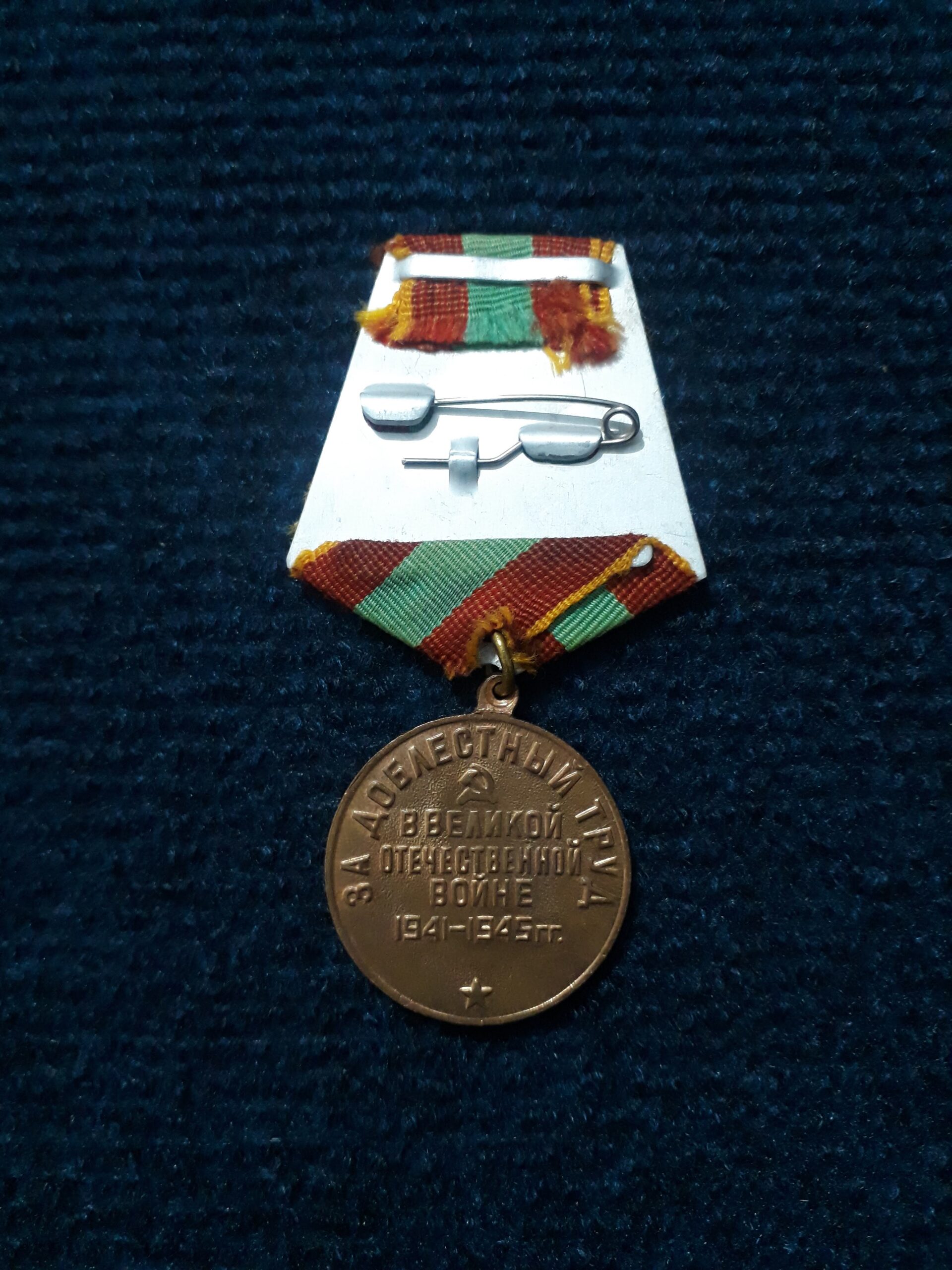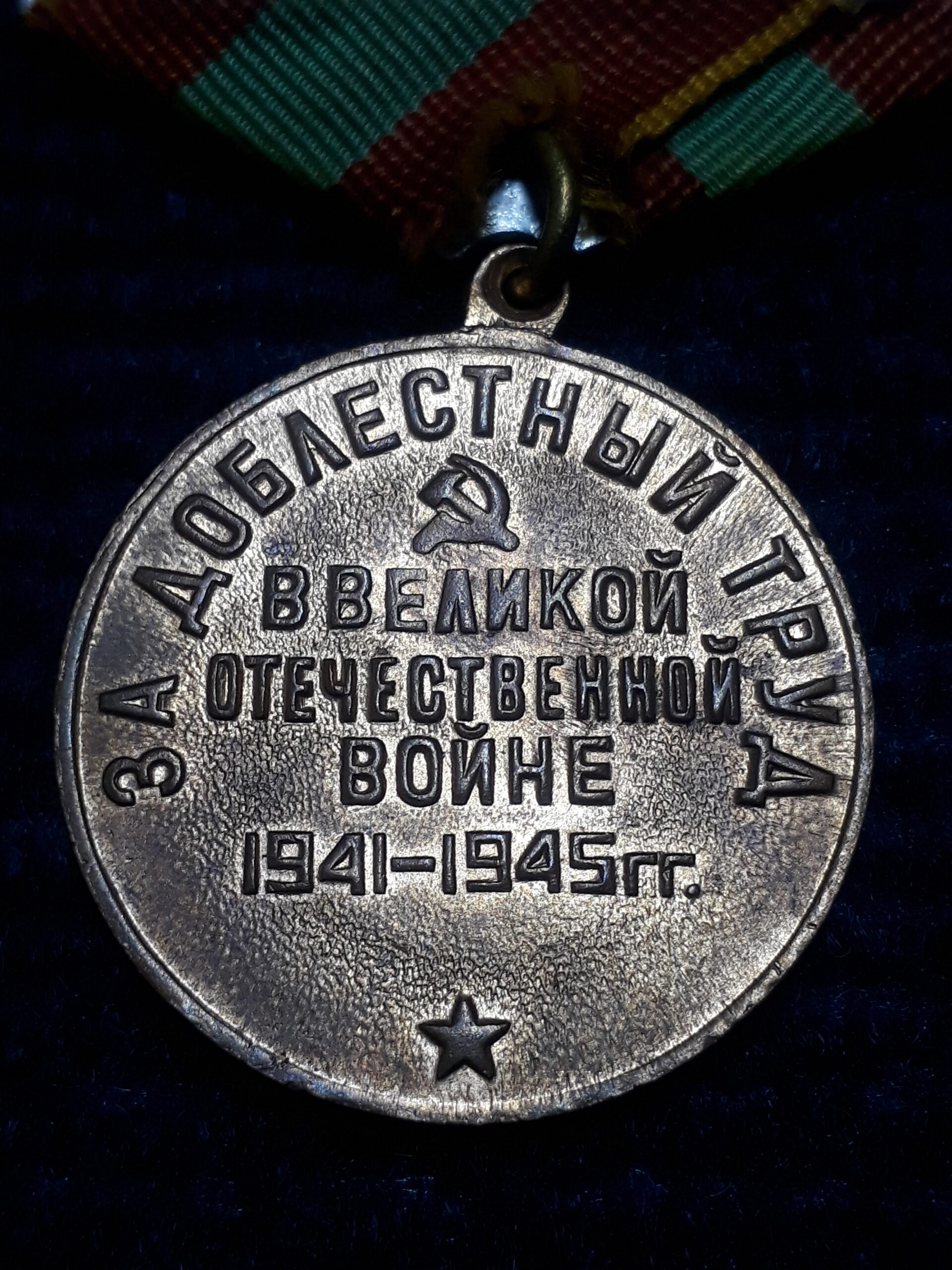 Medalha original soviética instituída em 1945, concedida a civis que contribuíram de forma significativa para o esforço de guerra durante a Grande Guerra Patriótica.